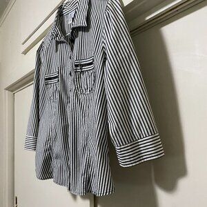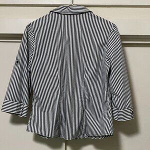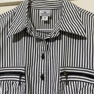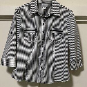 Worthington, black & white stripe, 3/4 sleeve, button-down blouse, size PM