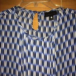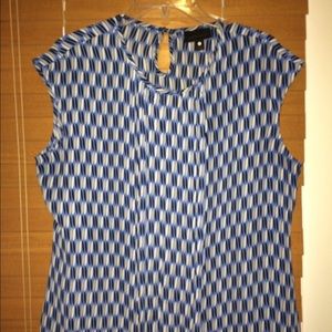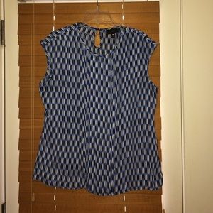 EUC, blue, black and white blouse, size L. 100% polyester, great for work under a jacket with a skirt or pants! Material is slightly sheer. Smoke free home.