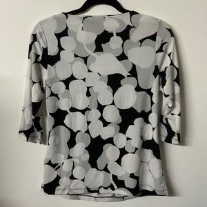 Worthington brand 3/4 sleeve top, color: black, white and gray. Size: Petite Med
