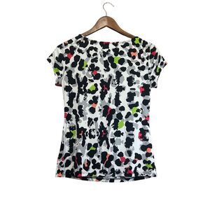 Worthington cheetah print shortsleeve blouse top size small P polyester spandex