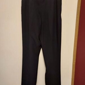 Black dress pants zipper button 2 metal closures pockets front and back 62 % polyester/32% Rayon 6 % spandex