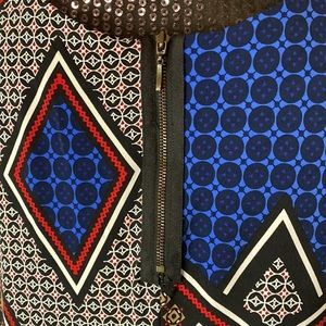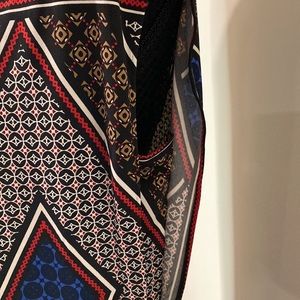 Worthington geometric print shift dress crossover front exposed zipper back M