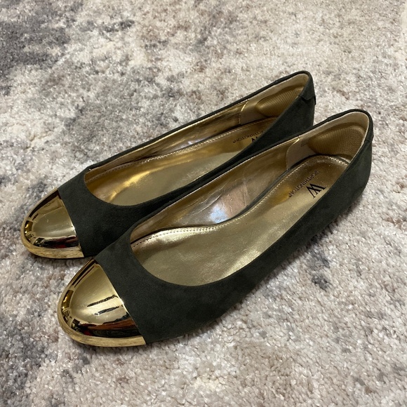 Womens Worthington green and gold 9 size 9m suede very nice flats good condition pictures show all :)