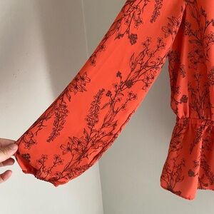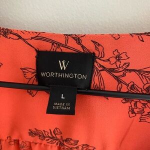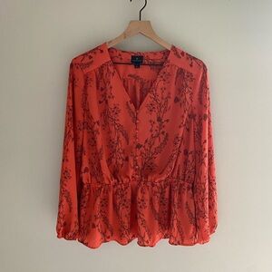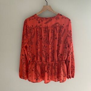 Worthington orange floral long sleeved blouse size large