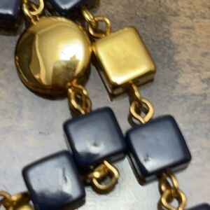 Worthington square gold & navy blue bead necklace