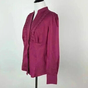 Worthington stretch womens top sz M button down long sleeve raspberry pink ruffle career