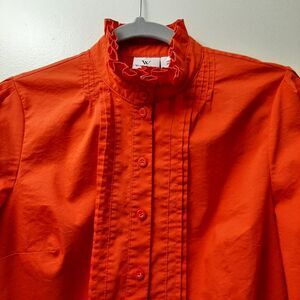 Worthington vintage inspired High Neck Red Puff Shoulder Pleated Cotton Medium