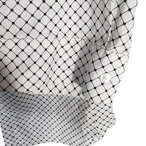 white and black geometric 3/4 sleeve button down top