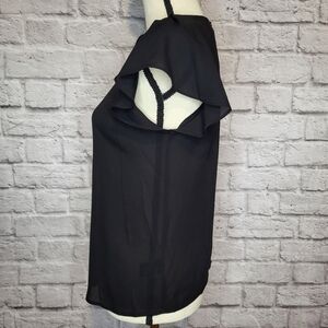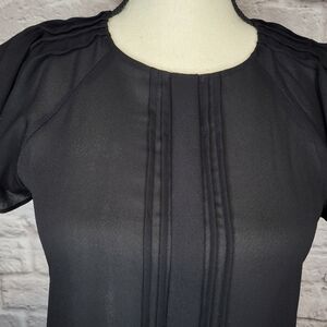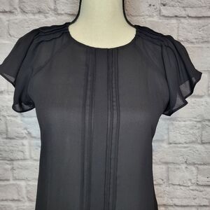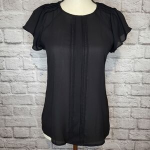 Worthington women's black semi sheer front pleated cap flutter sleeve top sz PXS