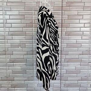 Polyester spandex blend zebra print blouse by Worthington with an empire waistline, v-neck, and long sleeves with cuffs. Great pre-owned condition.