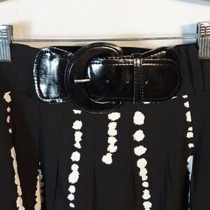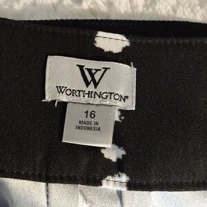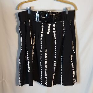 This black and white Worthington belted skirt is a size 16 with a waist measuring 38" and a length of 22". Zips up the side and has two side pockets. Polyester blend with some stretch. Pre-owned and in excellent condition. All offers are welcome.