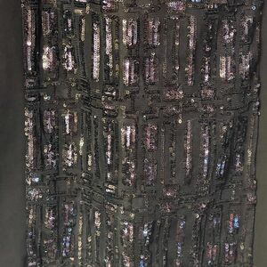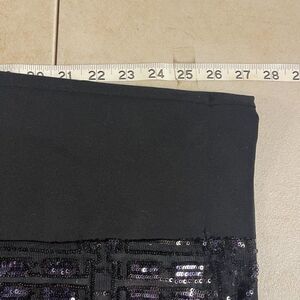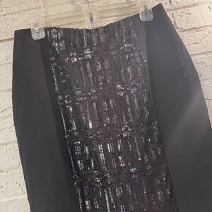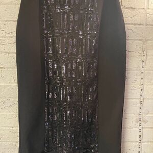 Excellent condition. NO holes, rips, or stains. Slit in back that is still threaded at bottom so you could remove or keep as is. No real stretch. Fully lined. Partial zipper in back.