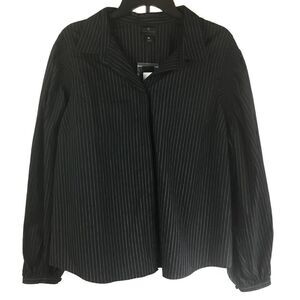 Worthington Blouse Button Down Black White Pin Stripe Long Sleeve Small