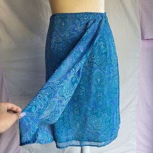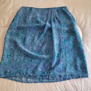 Worthington Blue Paisley Faux Wrap Mini Skirt Size 12