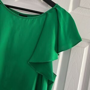 Elevate your style with the Green Ruffle Sleeve Top. Perfect for any occasion, this top features elegant ruffle sleeves and a vibrant green hue. Silky material.