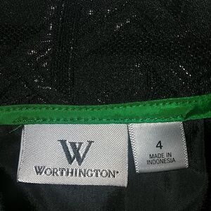 Worthington》 black geometric jaquard skirt with a metallic sheen (depending on the way the light hits it). Fully lined with zipper & slit in back. 52% Cotton/ 48% Polyester
