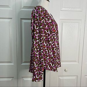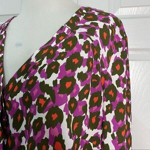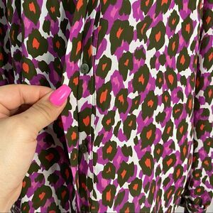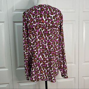 Worthington Leopard Print Colorful Long Sleeve Blouse V-neck Button Down