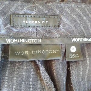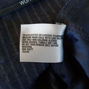 Navy with gray striping high-rise straight leg flat front 2 pocket Modern Fit pants by Worthington. Professional career wear or dressy casual wear.