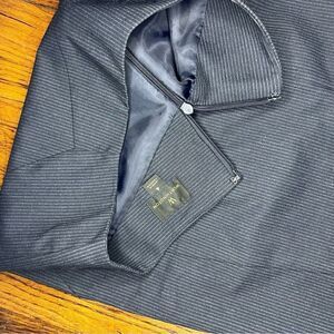 Work skirt. Dark blue pinstripe. Professional skirt. Work attire. Back zipper closure. Small back slit.