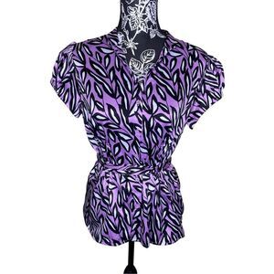 Worthington Satin Blouse Tie Closure Funky Office Workwear Work Colorful
