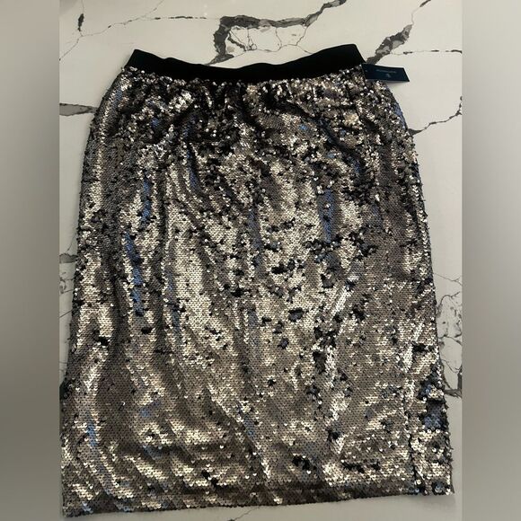 Worthington Silver Sequin Midi Skirt NWT Large