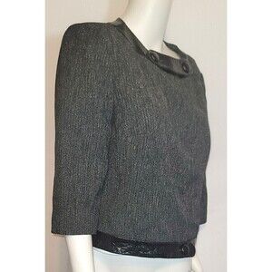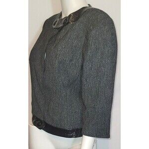 Worthington Stretch Gray Snap-up Front Blazer w/ Faux Leather Trim - Size PL