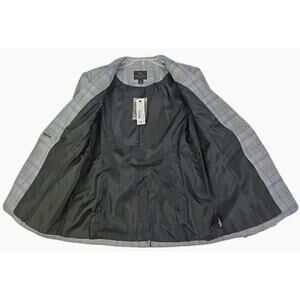 Worthington~Woman Size SPetite~ Gray/Black Plated Print Career Blazer Jacket NWT
