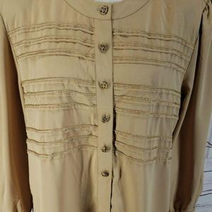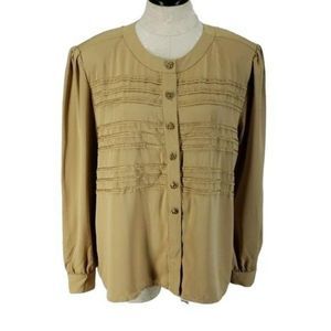 Worthington Tan Ornate Button Down Blouse Shirt
