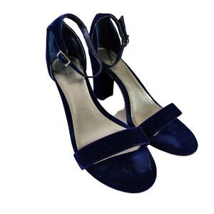 Worthington Women's Blue Velvet Ankle Strap Block Heel Sandals Size 10