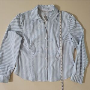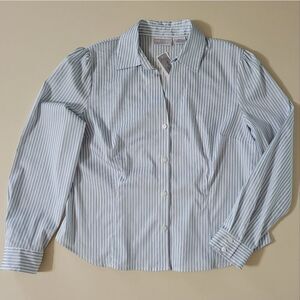 Long sleeve women's stripe dress shirt by Worthington is not too thin or too thick, and feels soft and comfy. This button up shirt is nicely stitched and detailed and is suitable for both formal and casual, especially good for office workwear. Rolling up or turning down sleeves to create different looks. Wear it with your leggings, jeans, shorts, or skirt. Easy for a casual style! Tie a knot on the front or tuck into skinny jeans. NWT