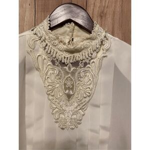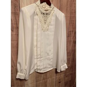 Worthington size 16W Pleated Blouse Cream Vintage Lace buttons