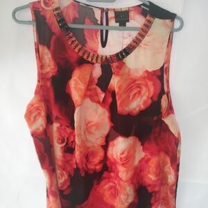 Beautiful lightweight sleeveless pullover top. Neck lined with rhinestones. C