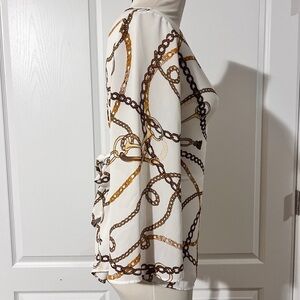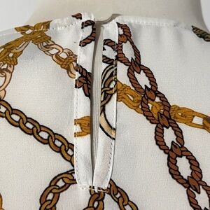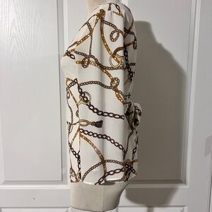 Beautiful blouse from Worthington. Perfect for the office, church, or any semi-formal occasion. Pairs beautifully with skirts and slacks. Equestrian theme print. Ladies size extra small