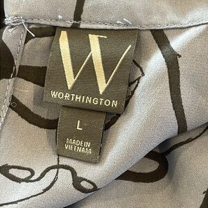 Add an artistic flair to your wardrobe with this Wortington abstract painting print blouse in size L. The unique print combines bold and dynamic colors, making it a statement piece for casual or dressy occasions. Its lightweight fabric offers comfort and breathability, perfect for year-round wear. In excellent condition, ready to elevate your style.