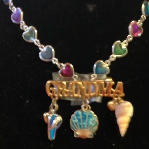 metal necklace with beautiful charms from the ocean. this one of kind necklace will put a smile on your grandmothers face, and wait till she tells her friends that you bought it for her. this metal necklace can be made to fit any length .🐸🐱