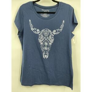 Wound Up Blue Western Rodeo Graphic TShirt Short Sleeve Juniors Womens 3XL NEW