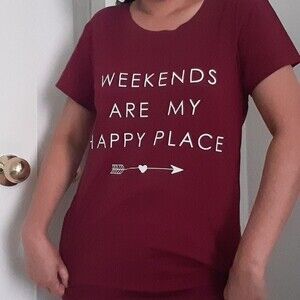 Wound Up Burgundy Weekends Are My Happy Place Short Sleeved Tee Size XL