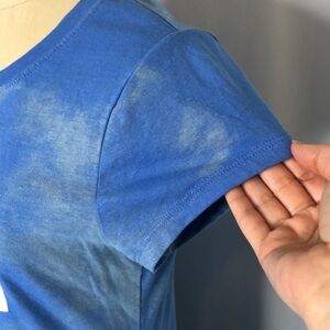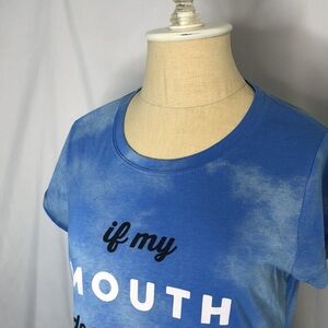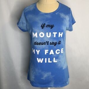 Short Sleeve message: “ if my mouth doesn’t say it my face will “ Blue washed round neckline