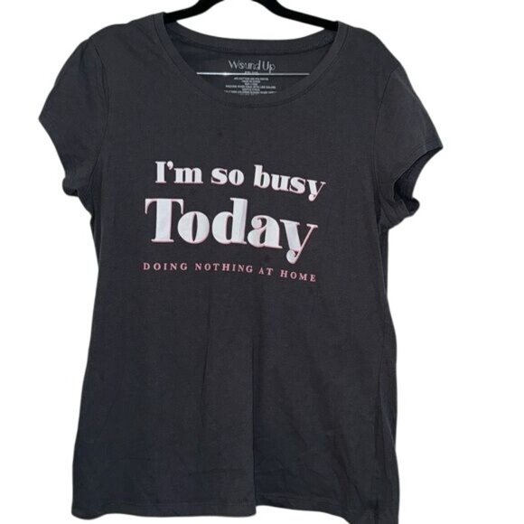 Wound Up Womens Graphic Tee XXL "Im So Busy Today Doing Nothing At Home" Black