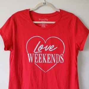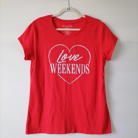 Wound Up Womens Red Short Sleeve Love Weekends Graphic Tops Size XXXL/21