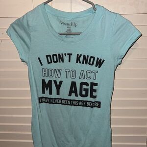Wound up light blue graphic, short sleeve, shirt, size extra small