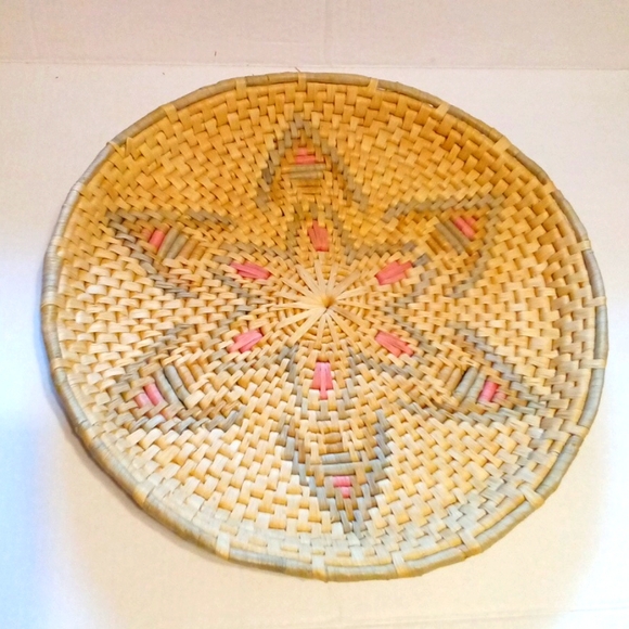 This is used with pale green and pink. Some fading. We used as decoration only leaning against a wall. No hook to hang.