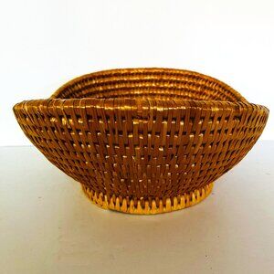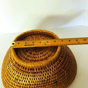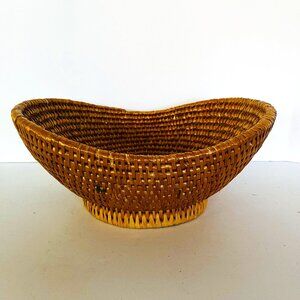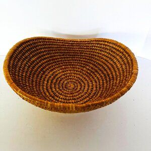 Woven 13" Long Oval Raffia Basket Lateral Sides 5.5" Height Beige Shiny. Beautiful oval basket, great for bread, fruit or to store other items. Pre-owned item in good condition, has minimal wear as you'd expect from a used item. Please use the zoom feature to determine shape and condition, check all pictures and measurements carefully for detailed viewing as they are part of the description and help you with your purchase. I invite you to always check my new listings, buy with confidence. Smoke free home. Thank you, have a wonderful day!!