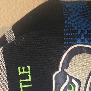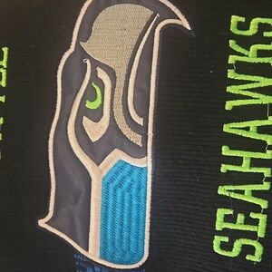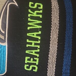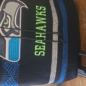 Seattle Seahawks woven backpack in black, blue, and green. Features team logo and name. I've taken pictures 📸 of any flaws, and the price reflects on condition.