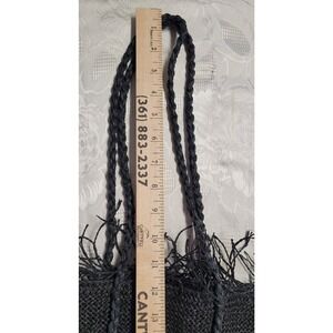 Woven Black Handbag Purse 100% Paper Black Frayed Beach Bag Snap Closed Zip...
