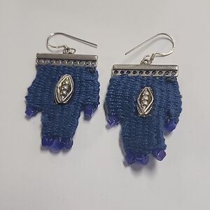 Woven Blue Earrings Dangle Drop Silver Tone Metal Womens Jewelry Inventory Location Box 35