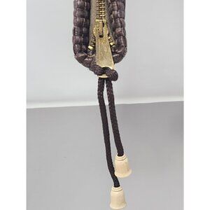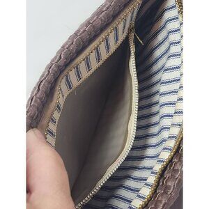 Woven Brown Clutch Pouch With Zipper & Drawstring Detail Striped Fabric Lining