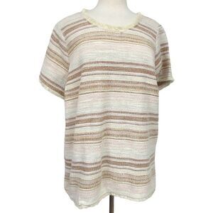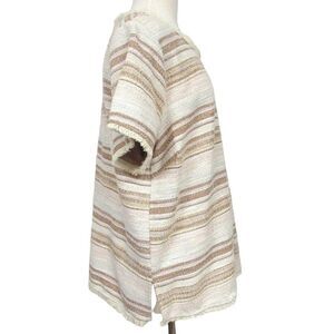 Woven Cotton Pullover Tunic Top Fringed Edges Neutrals Green Envelope LA 1X NEW