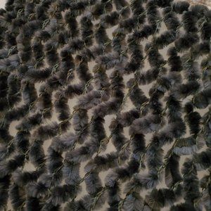 A chenille like textured woven dark green scarf. It is approx 75" long. I typically ship same/next day. Let me know if you have any questions.