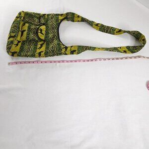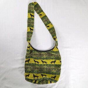Woven Embroidered Black Green Yellow Wolf Hippie Boho Crossbody Bag